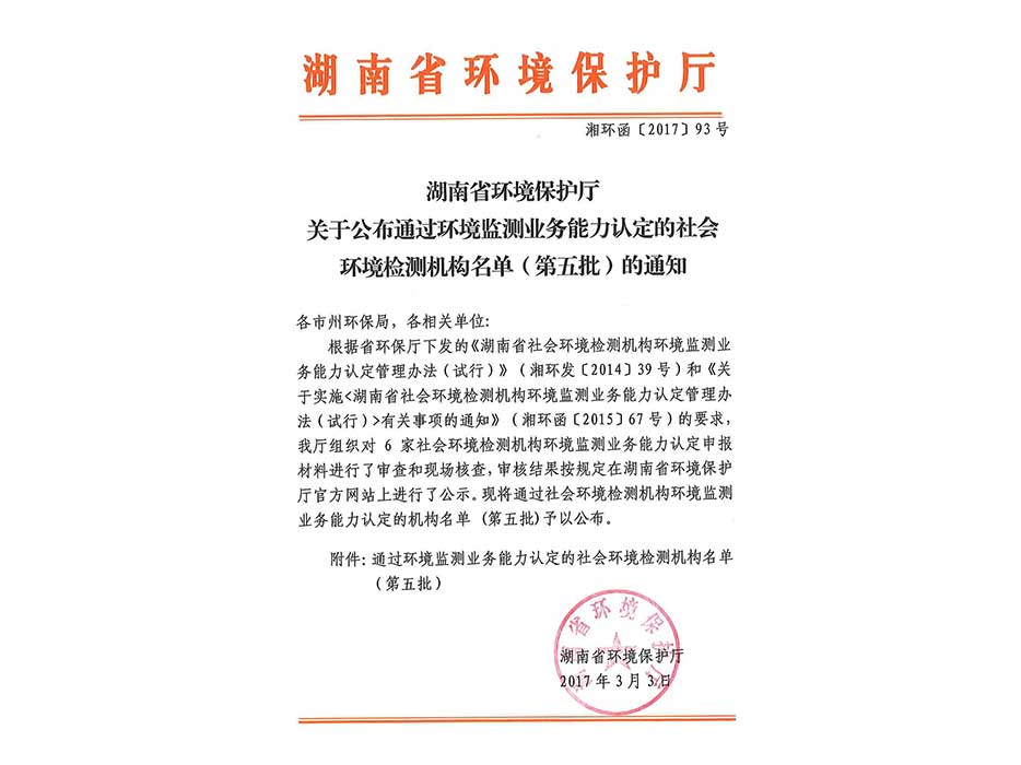 環境監測業務能力認定書